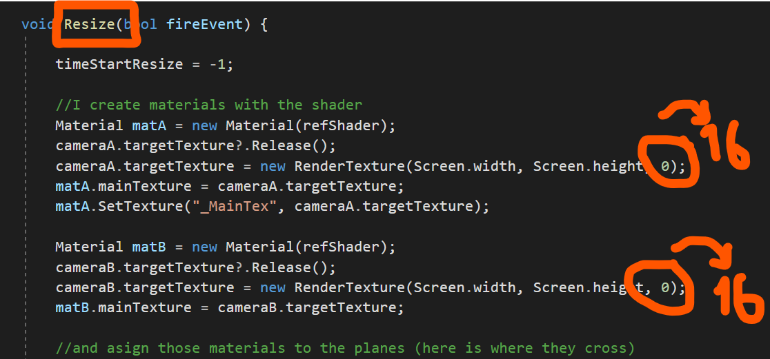 Locate the Resize method and the two lines in the image, and replace that 0 for a 16.